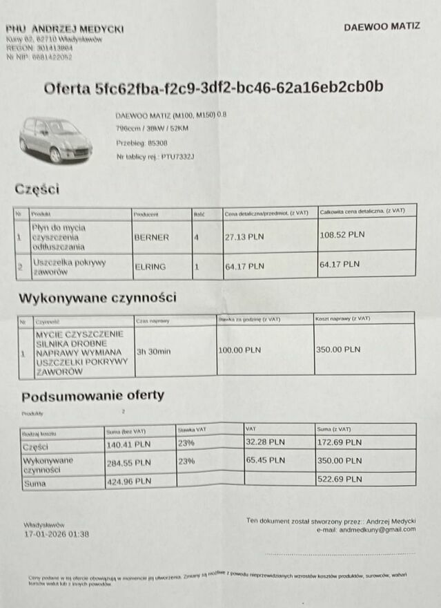 ostatnio wymieniono uszczelkę pod pokrywą zaworów ( rachunek - ostatnie zdjęcie )